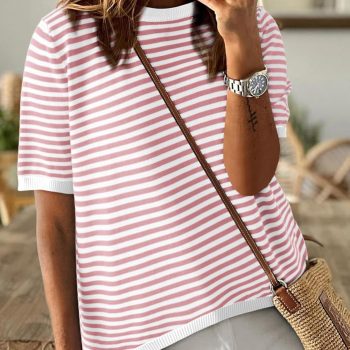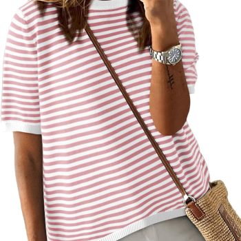 Women’s Short Sleeve Crewneck T Shirt 2025 Summer Ribbed Knit Slim Fit Basic Solid Color Tee Tops